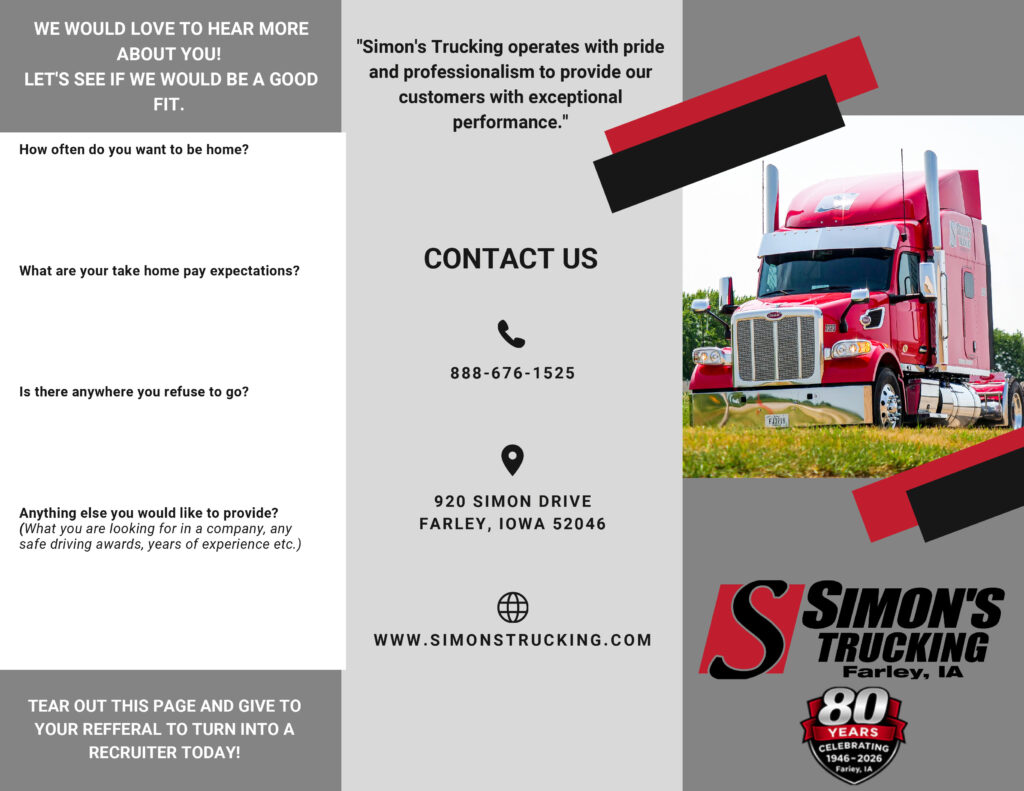 Simon’s Trucking is currently hiring for multiple positions, including Regional Hazmat & Tanker Drivers, OTR CDL-A Drivers, Tire Technicians, and Truck & Trailer Mechanics. With nearly 80 years in the industry, Simon’s emphasizes professionalism, safety, flexible home time, and in-house maintenance support—all things seasoned transportation workers understand matter .